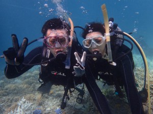 そして、明日で最後いですが ダイバーのお客様は最後だったので研修生の南君とのショットでーす