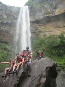 ヒナイ川から見える滝の迫力は台風後ならではですね! 皆さん気分も爽快! 今日はツイてますよーーー!