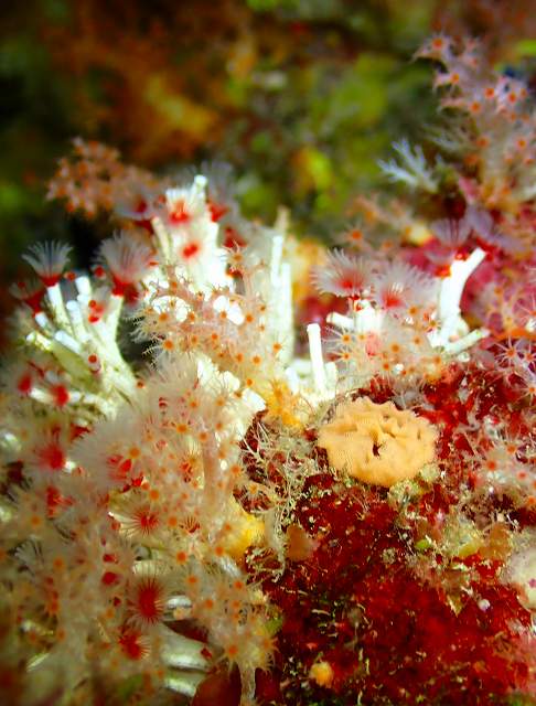 綺麗な貝も隠れていました♪ ピンク色の可愛いソフトコーラルに、ピンクの貝が付き 可愛いやーん♡