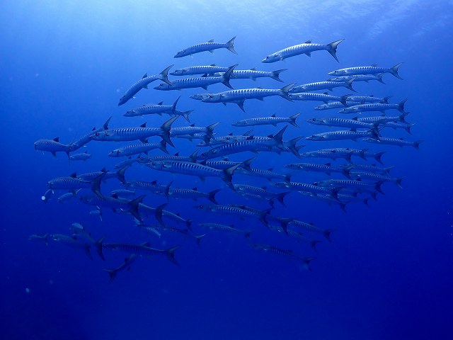 海は青い!! 沖の方で、鹿川バラクーダの群れもGET!