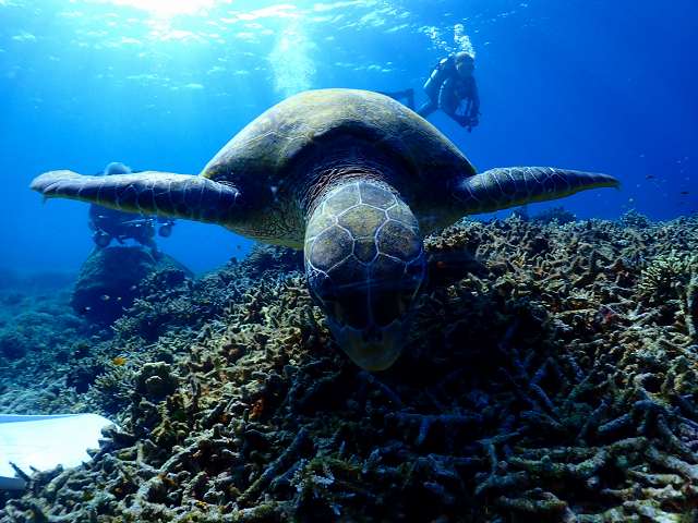 西表らしいサンゴ礁とリクエストのカメをお見せしますよ。