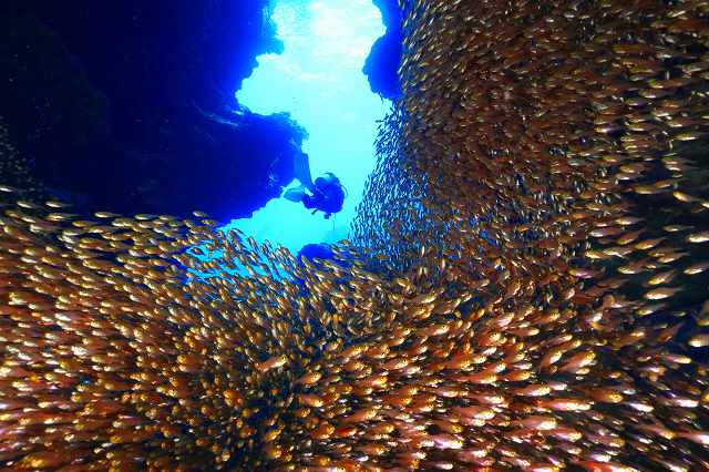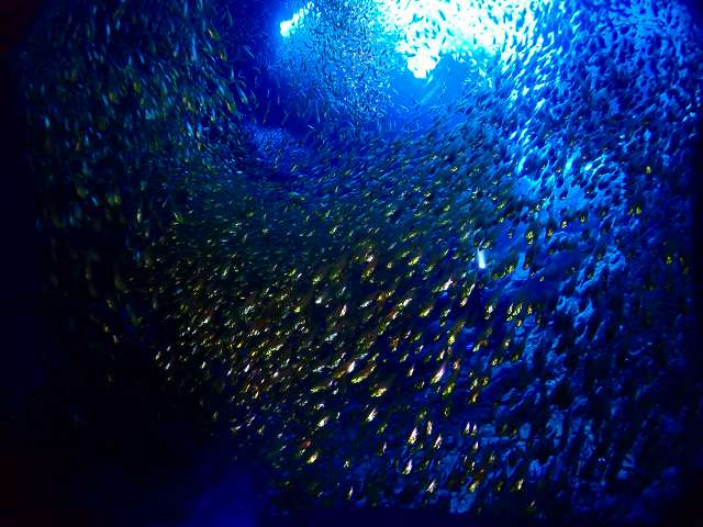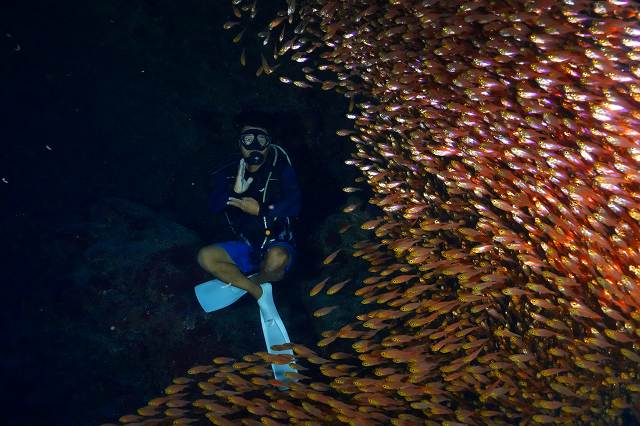 皆さん。。。すごいでしょ。。。ダイバ-も隠れる程のキンメモドキ。。