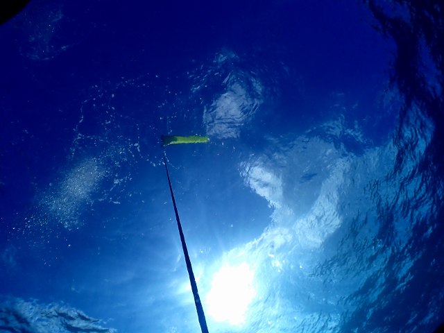 最後の安全停止は水面見上げる太陽と空が眩しいよ。。