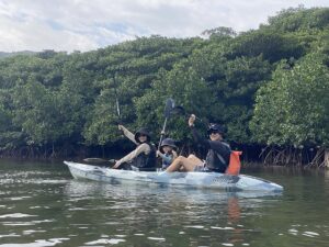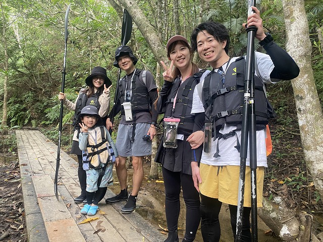 ちびっ子も頑張りました! Posted 2025年11月4日 こんにちは♪ ゲスト5名様とピナイサーラの滝へ♪ 曇りがちですがたまに太陽の陽射しも出て快適な時間でした♪ 親子3人でマングローブカヌー☆ 5歳児も頑張って漕いでました~ 青空が見えるとやはり嬉しいですね☆ 新婚旅行のお二人も最高の笑顔☆頑張って滝の近くまで来てくれました♪ マイナスイオンも気持ちよかったね~☆ また是非西表島へ遊びに来てくださいね☆