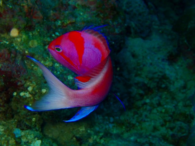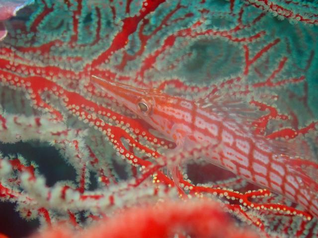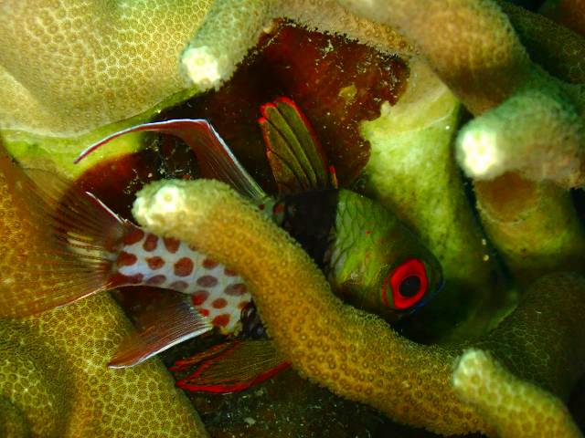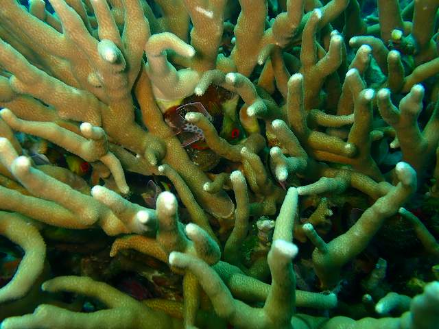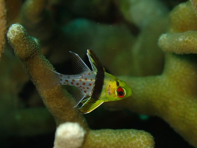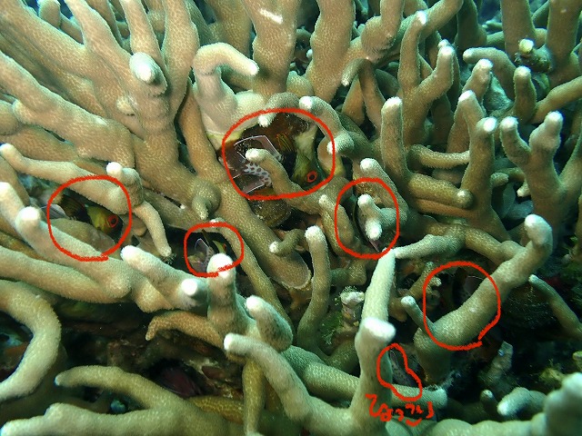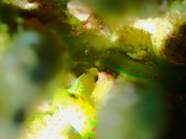上がる前にサンゴを覗くと、お久しぶりに見た!アカテンコバンハゼ!!!