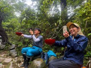 あたたかいホットドリンクを飲んでまた滝つぼを目指して下山です♪