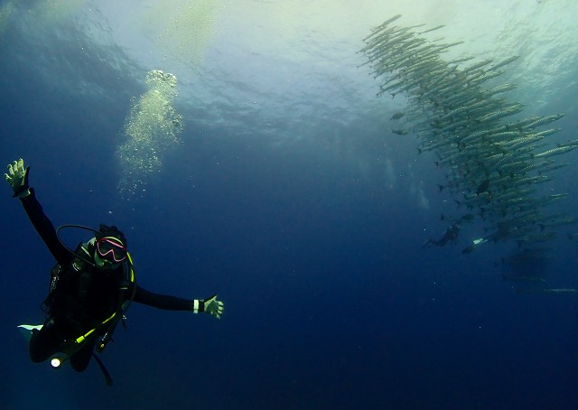 初バラクーダの群れを大接近で見たYちゃんも興奮!!