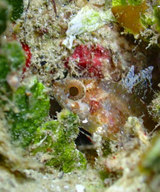 小さなサンカクハゼ系の赤ちゃんもいましたよカラ緑の目が綺麗ですね♪