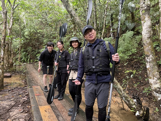 あと今年も3日間ですね!! Posted 2025年12月28日 こんにちは♪ ゲスト4名様とピナイサ-ラの滝コ-スへ行ってきましたよ♪ あいにくの曇りのお天気でしたが出発してカヌーに乗り込んだ瞬間、みなさんととっても興奮されてました~♪ この時期は水に触れるのも冷たいのですが、、、滝の近くまで行ってマイナスイオン欲をできるのはとっても気持ちいいですね♪ 大きな巨石から眺める滝もかっこいい! 初めての八重山旅行! 明日は宮古島へ行かれるそうです♪ 楽しい年末旅行ですね! また是非遊びに来てくださいね~♪