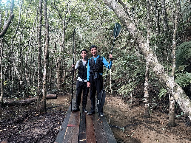 今日も気持ちよいピナイサ-ラの滝でした♪ Posted 2025年12月30日 こんにちは♪ ゲスト2名様とピナイサーラの滝へ行ってきました~♪ シンガポール在中のお二人は日本が好きでよく遊びに来られてるそうです☆ 朝から快晴が広がって気分も爽快でした~♪ マングローブの干潟にあっがて生物たちを観測♪ 大きな貝やカニたちの生活が垣間見れましたね♪ 午後は滝つぼへ♪ 水量もありかっこいい滝が見れましたね~♪ 瑞々しい植物もとても綺麗でした♪ 今日一日頑張って歩いていただきました♪また是非西表島へ遊びに来てくださいね♪♪