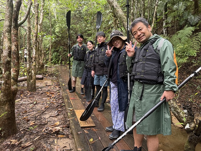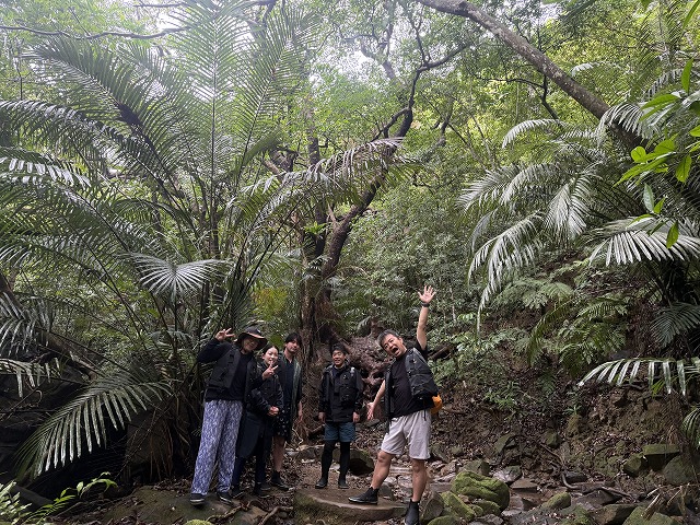 チラホラ雨が降ったので、皆でお揃い雨具の、5名様と