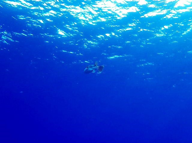 水面ギリギリに、ケショウフグ!しかもこの奥にも、もう1匹居たんです!!!
