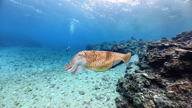 ゲストの方は、コブシメがレンズにぶつかる程接近して来たようです!!