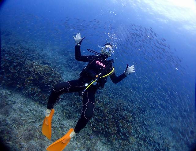 癒しのツバメウオの群れも、今日は透明度がいいから、遠くでも見えちゃう💗