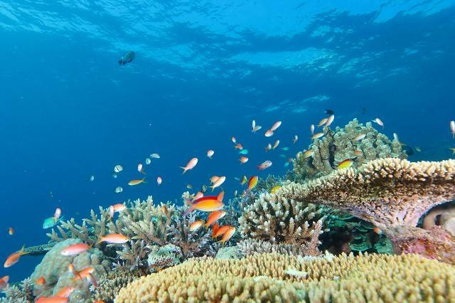 深場には、大きなサメやイソマグロ群れが、列にになって泳ぐ姿もカッコよかったー!!!