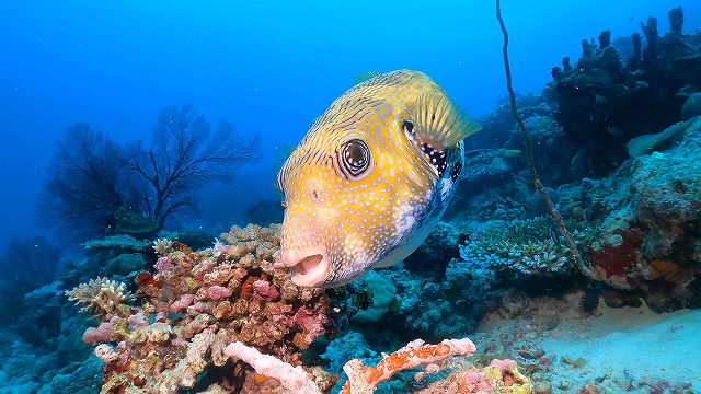 ケショウフグが可愛すぎて~(^^♪ 全く逃げず最後には身体がレンズにドン・・・ ぶつかる程、全く気にならないようでしたね~