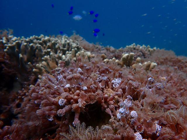 5月初めに、ツツウミズタが産卵して その数日後に、エダサンゴの大産卵が始まります。