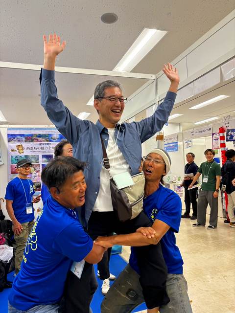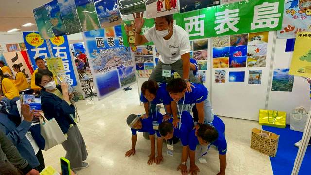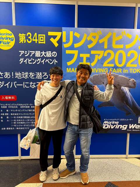 マリンダイビングフェア2026終了♪ Posted 2026年4月7日 こんにちは(*^-^*) マリンダイビングフェアが4月3日4日5日 で開催されました!! 毎年恒例行事になっておりますが、ダイビング業界一番のビックイベントですからね~!! PADIブースにはブルーシーズン西表! 今年は、 湊の甥っ子 湊大地君にお手伝いをしてもらいましたよ~ いっぱい西表のお話してくれたかな?? ありがとう!大地!! じろうは、安栄観光の西表島ブースで 今年も盛り上げて宣伝!! 西表のブースはものすごくにぎわっております~ はい!この通りでーす👆👆👆 おみこしや~👇 嬉しそうでしょ?!笑 他にも、。。。けつバッド。。。?!!胴上げ。。。 色々ネタありです~ あれ??スーパーマンにもなっていたお客様もいましたよ♡ 安栄観光のお安くなる高速船チケット券ももらえてたようです~ ラッキー!! まだまだ西表島の宣伝させていただきます!! 4日はお昼から 西表トークショー!! 湊じろうと、メラマウリゾート國井氏による司会進行! たくさんの方が聞きにきてくれました☆ ハプニングなどあった模様ですが、また動画でアップ出来るかな?? お楽しみに~ 夜は、jic久米島&ブルーシーズン 合同飲み会!! 仲良しjicさんとの合同は初めてで、盛り上がったでしょうね~♡ 今回の飲み会はブルーシーズン関東メンバーさんたくさん参加してくださいました!(^^)! 来れなかった方は、西表で盛り上がりましょう~ ご参加のみなさまありがとうございました♪♪ 夏お待ちしていますよ~(^^♪ Yーへい君にも、今年もたくさんお手伝いしてもらい 助けてもらいましたよ~!! ありがとうYへい!! 安栄観光のみなさまもお世話になりました!! 最後は、指導団体のPADIメンバーさん達と☆ 大いに盛り上がったマリンダイビングフェア2026も終了!! 遊びに来て下さったみなさま、ありがとうございました♪ 新規のお客様からもご予約頂きましたので、嬉しいですね♪ 明日には、湊じろうも湊テンちゃんも 西表島に戻って来ますよ~!! 最後に牡丹の花とテンちゃん♡ 海ツアーも10日から再開!! 夏まで走り抜けます!! 皆さんにお会い出来るのを楽しみにおまちしていまーす!!