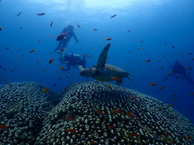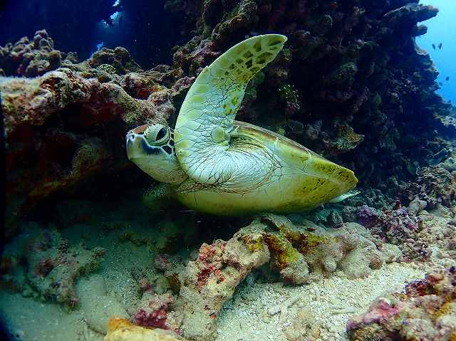 体験ダイブでこんなに近くでアオウミガメGET!!