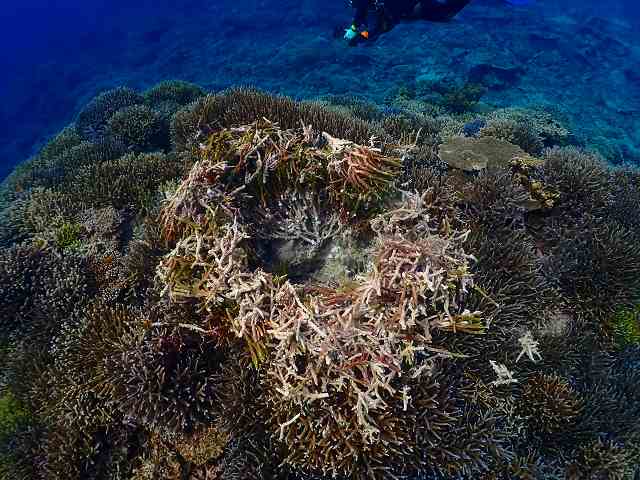 復活してきてる、エダサンゴに、、大きな穴・・・・・・
