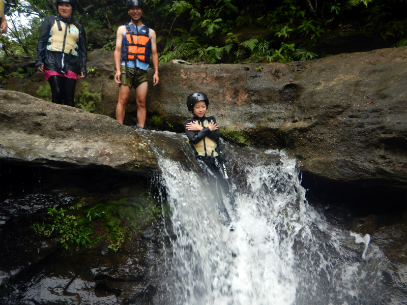 キャニオニングは昨日海ツアーに行かれていたKさん一家と!
